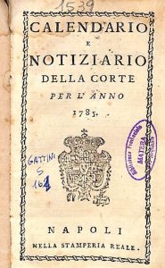 CALENDARIO E NOTIZIARIO DELLA CORTE PER L’ANNO 1785