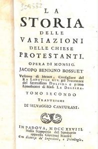LA STORIA DELLE VARIAZIONI DELLE CHIESE PROTESTANTI. OPERA DI MONSIG. JACOPO BENIGNO BOSSUET … TRADUZIONE DI SELVAGGIO CANTURANI. TOMO PRIMO [-TERZO], VOL. 2
