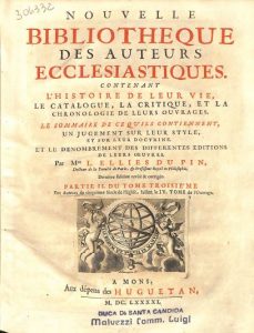 NOUVELLE BIBLIOTHEQUE DES AUTEURS ECCLESIASTIQUES, CONTENANT L’HISTOIRE DE LEUR VIE, LE CATALOGUE, LA CRITIQUE, ET LA CHRONOLOGIE DE LEURS OUVRAGES; LE SOMMAIRE DE CE QU’ILS CONTIENNENT: UN JUGEMENT SUR LEUR STYLE, ET SUR LEUR DOCTRINE; ET LE DENOMBREMENT DES DIFFERENTES EDITIONS DE LEURS OUVRES. PAR M.RE L. ELLIES DU PIN, .. : PARTE 2 DU TOME TROISIE’ME. DES AUTEURS DU CINQUIÉME SIECLE DEL’EGLISE, FAISANT LE IV TOME DE L’OUVRAGE