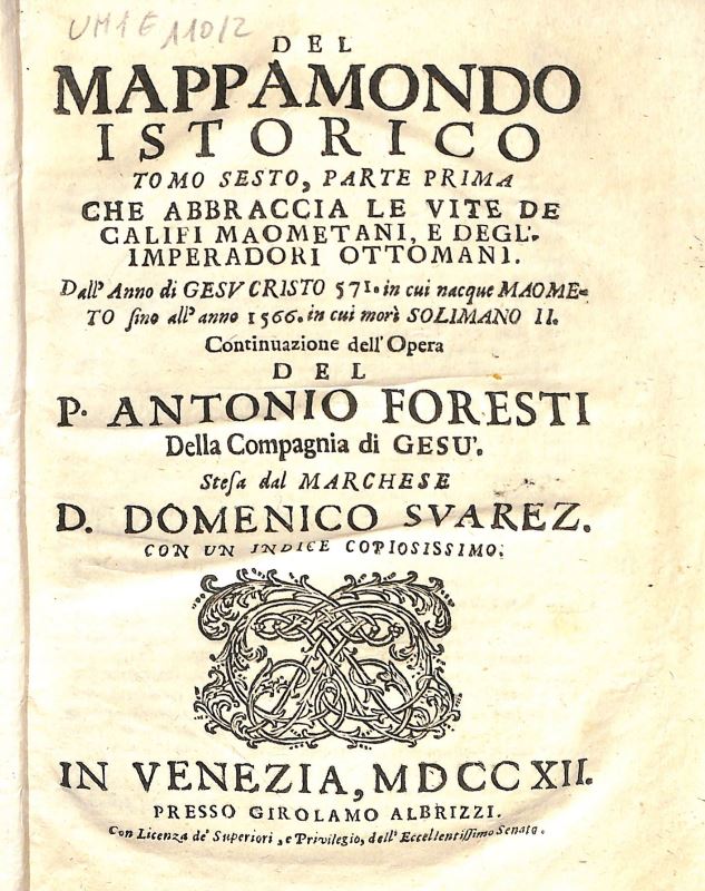 DEL MAPPAMONDO ISTORICO TOMO SESTO, PARTE PRIMA CHE ABBRACCIA LE VITE DE CALIFI MAOMETANI, E DEGLI IMPERADORI OTTOMANI