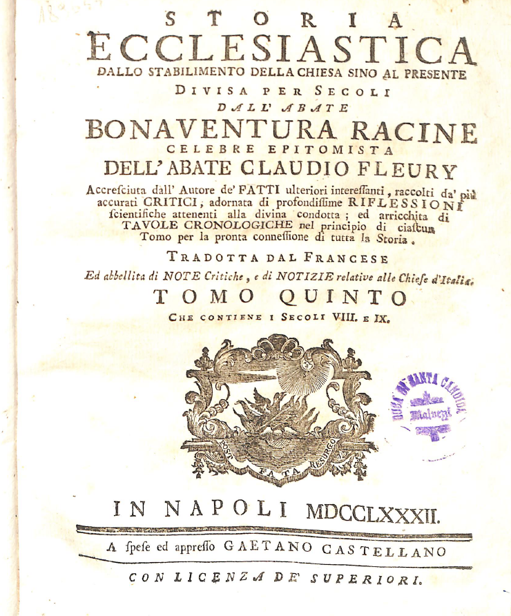 STORIA ECCLESIASTICA DALLO STABILIMENTO DELLA CHIESA SINO AL PRESENTE – TOMO V – LIBRO I